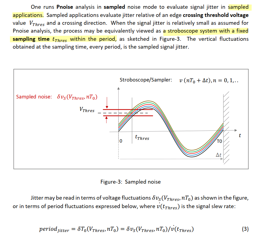 Cadence, Application Note: Understanding the relations between time-average noise (phase-noise) and sampled noise (edge-phase noise or jitter) in Pnoise analysis
